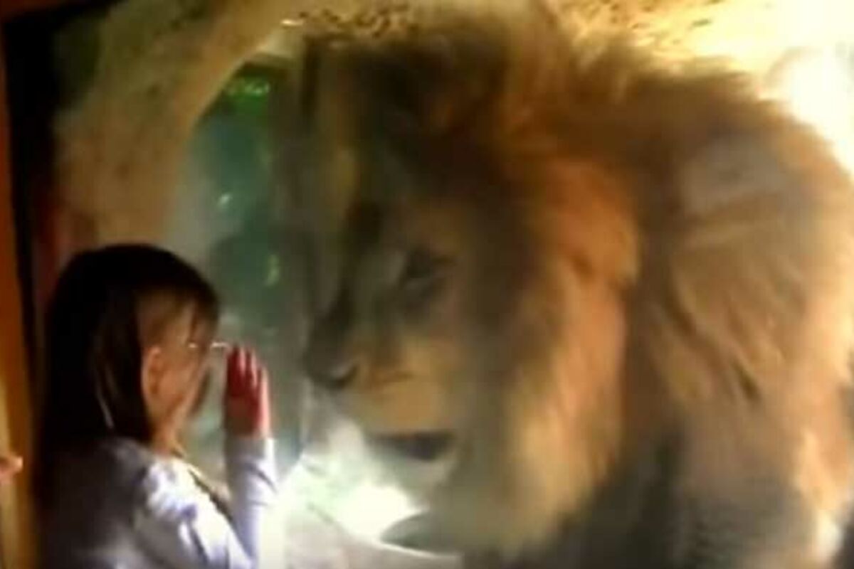 Kada je videla lava, oduševljeno se prislonila uz staklo počela da šalje poljupce kralju životinja! Njemu se to, izgleda, nije baš svidelo, pa je skočio i krenuo šapama da udara u staklo koje ih je razdvajalo.