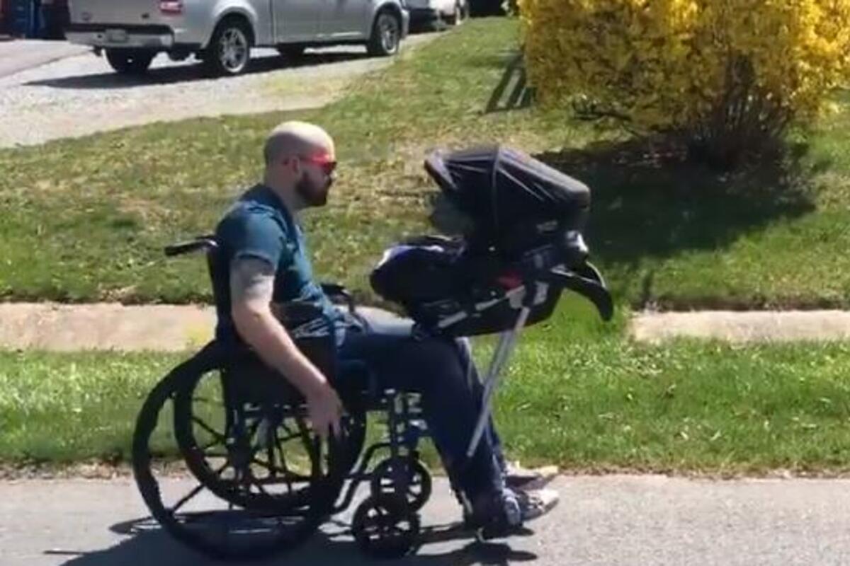 Naime, oni su napravili konstrukciju za invalidska kolica na koja može da se postavi auto-sedište da bebu, tako da ovaj otac može svoju bebu da šeta bez pomoći supruge.