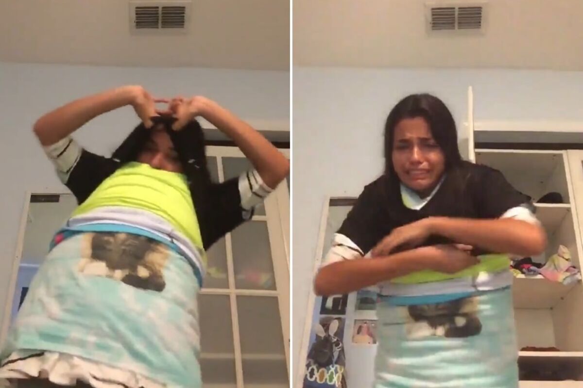Zamisao se ubrzo pretvorila u agoniju jer se bukvalno zaglavila. Svi njeni napori da skine majice sa sebe bili su neuspešni, pa je na kraju od muke počela da plače.