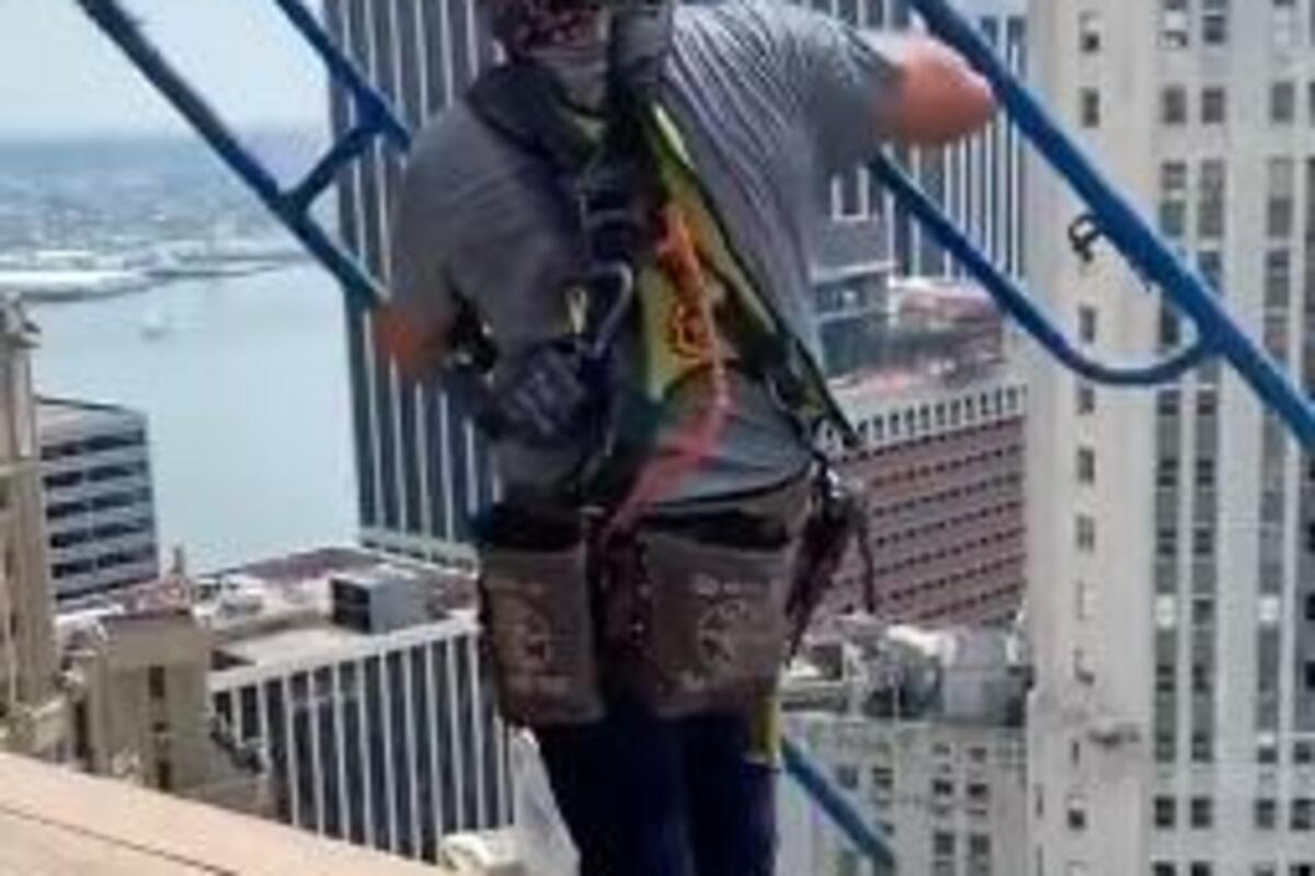 Kakav prizor je uspela da zabeleži kamera. Jedan od radnika pošao je da premesti deo konstrukcije preko dve uske daske samo sa šlemom, pojas za bezbednost nije bio zakačen. Da ne spominjemo to da se on doslovno nalazio u vazduhu, te daske bile su postavljene na nekoliko stotina metara, a možda čak i hiljana...
