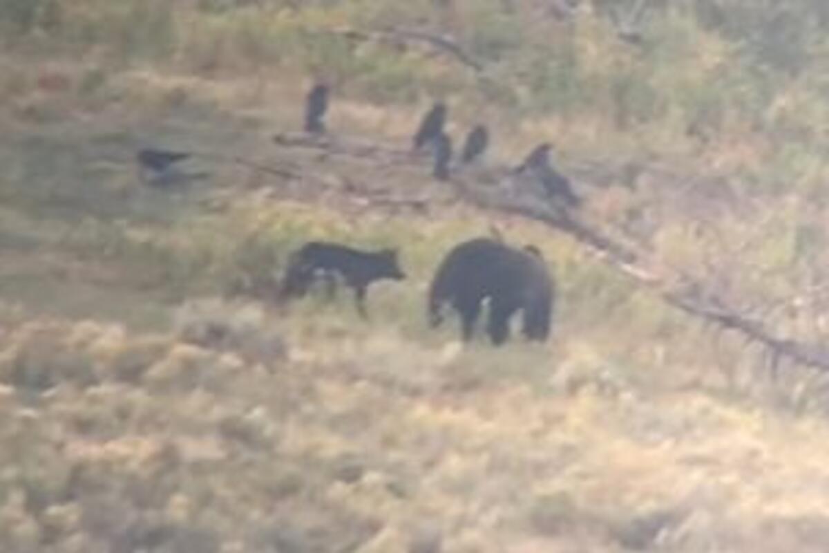 Turista u nacionalnom parku Jelouston u SAD snimio je u subotu kako vuk uporno napada grizlija, ujedajući ga za stražnjicu.