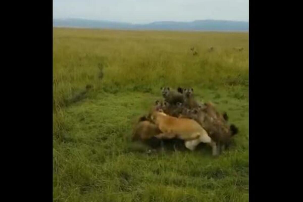 Čopor hijena napao je negde u Africi, na snimku možemo videti da bi joj smrt bila sigurna, da lavovi nisu pritekli u pomoć.