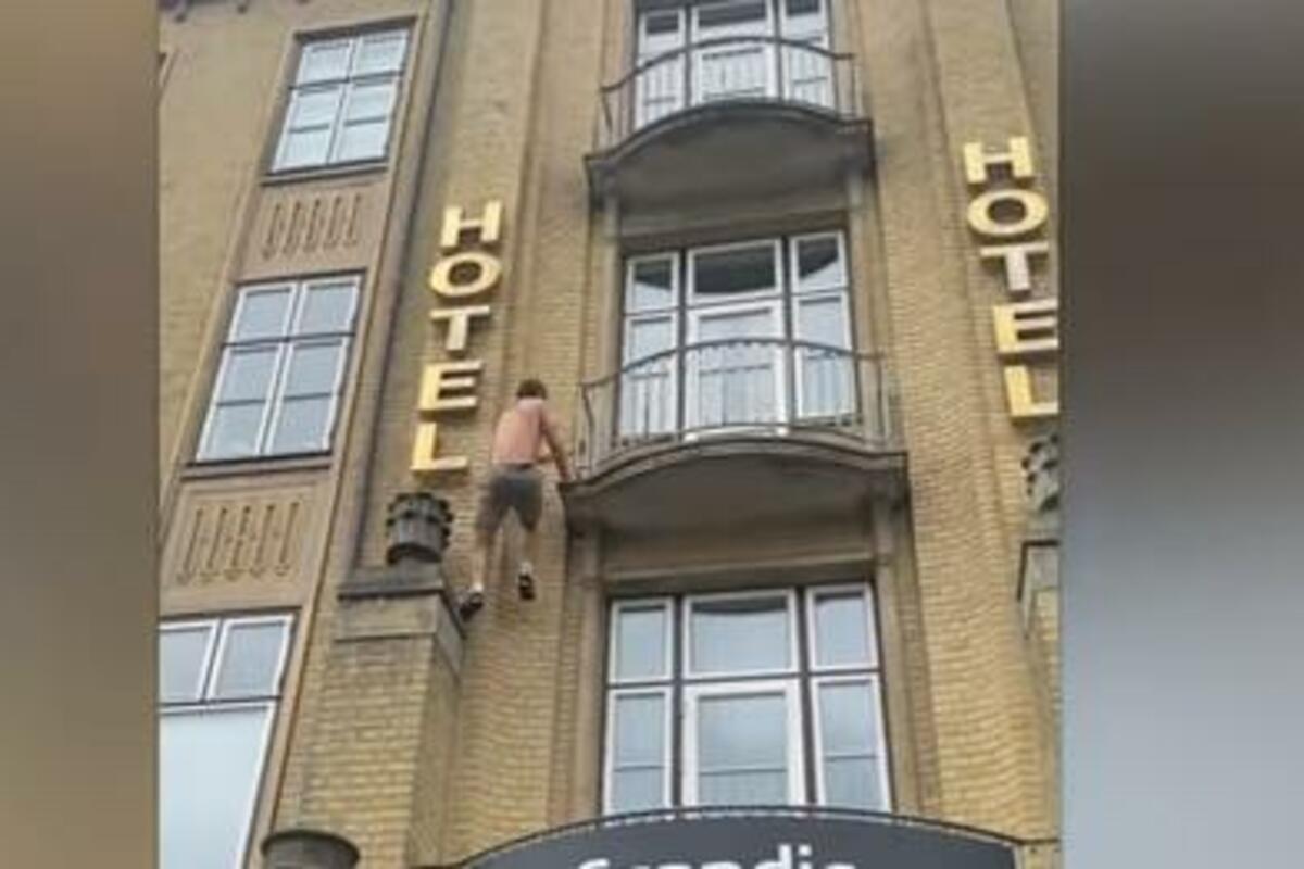 Manje, po profesiji alpinista, očito je usavršio i poznavanje parkura kada je u stanju da se za desetak sekundi popne sa ulice do drugog sprata hotela.