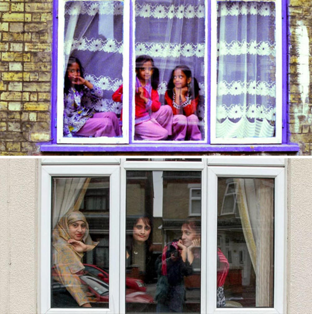 Sleva na desno na fotografiji se nalaze Šenaz Begum, njena sestra bliznakinja Ruksana i njihova starija sestra Itrat. Porš ih je fotografisao na prozoru njihove kuće u Kromvel Road-u.