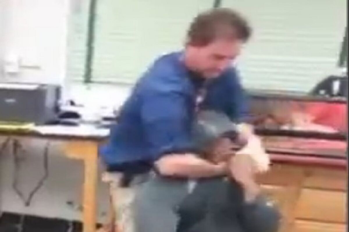 Dečak koji je bio žrtva zahvata shvatio je da se nastavnik ne šali i odmah je digao ruke u vis u znak odustajanja s obzirom da mu je disanje bilo ograničeno.