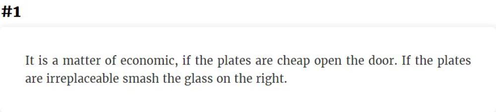 Sve je stvar kinte! Ako su tanjiri jeftini, otvori vrata. Ako su tanjiri nezamenljivi, razbi staklo desno.