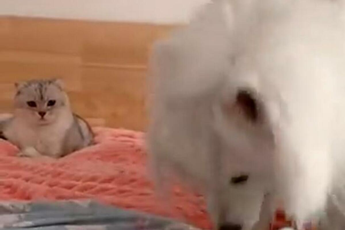 MAČKA ODREAGOVALA KAO ČOVEK! Pas se zabavljao, a ona je uradila ČUDNU STVAR (VIDEO)