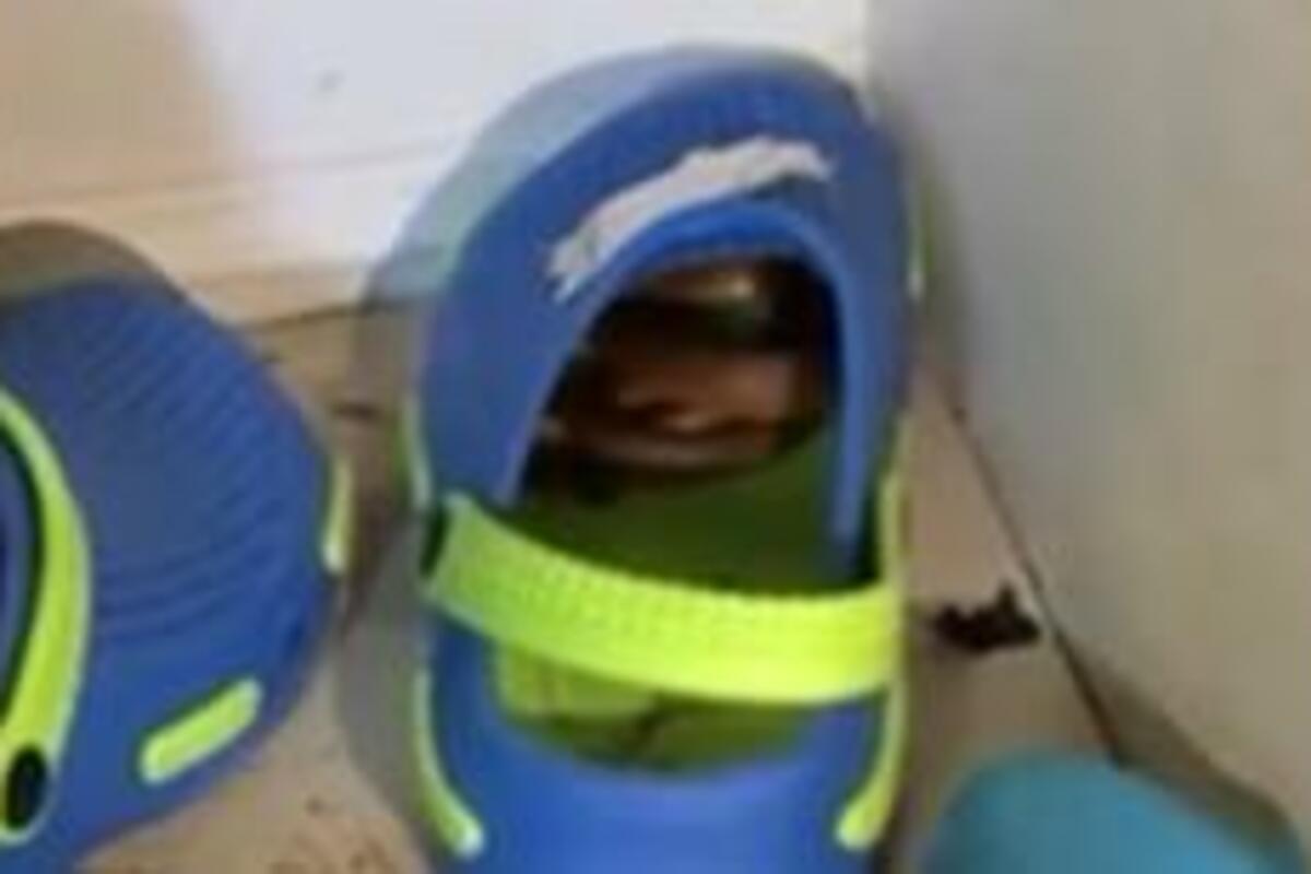 Na snimku specijaliste za uklanjanje zmija se vidi gomila obuće u cipelarniku, a skroz pozadi je otrovnica sklupčana u samom vrhu papuče.