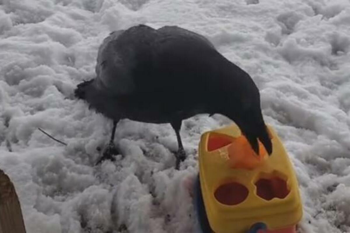 POGLEDAJTE KAKO GAVRAN REĐA OBLIKE TAČNO U PREDVIĐENE RUPE: Čak ima i PLES koji izvodi kada pogodi, HIT! (VIDEO)