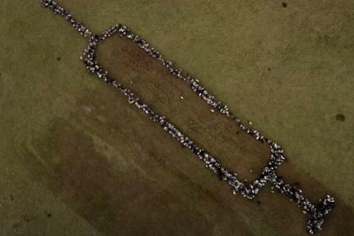 Naime, snimci iz vazduha snimljeni iznad polja u Šneverdingenu, južno od Hamburga, prikazuju oko 700 ovaca i koza koje su načinile džinovski špric.
