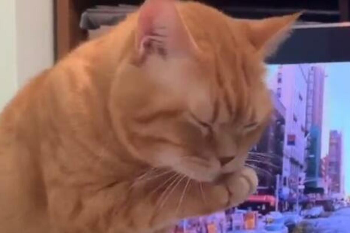 Gazda joj je tražio šapu, one je podigla u vazduh i činilo se da će mu je spremno dati i udovoljiti njegovom zahtevu, ali onda se dogodio neočekivani preokret. Mačka se predomislila i polizala sopstvenu šapu.