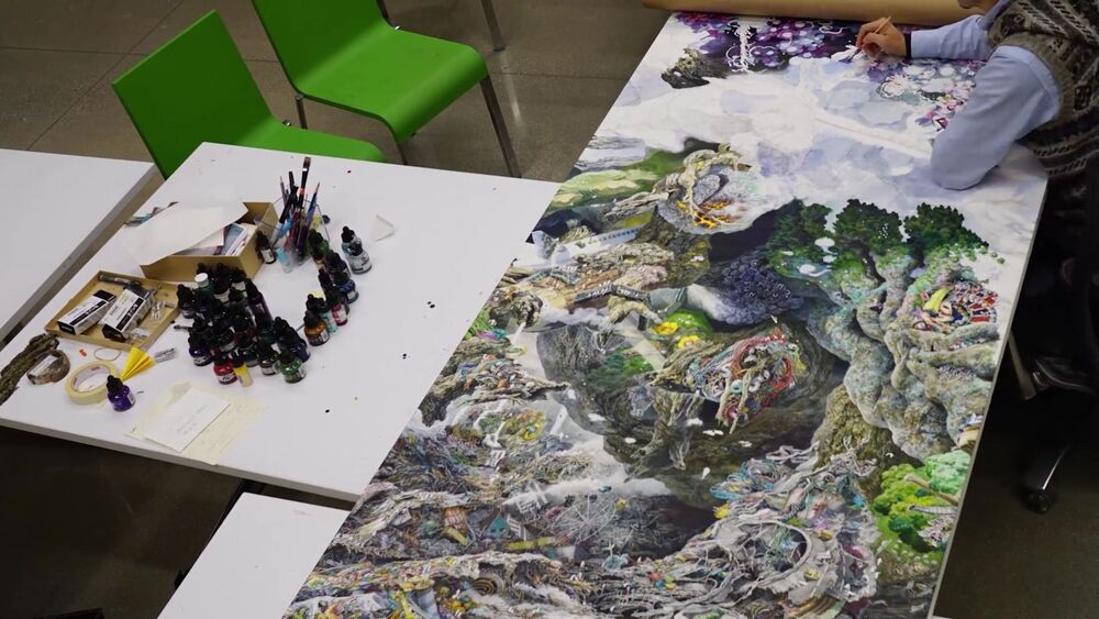 Kroz sličan proces prošao je i umetnik Manabu Ikeda sa svojim ogromnim crtežom "Preporod".