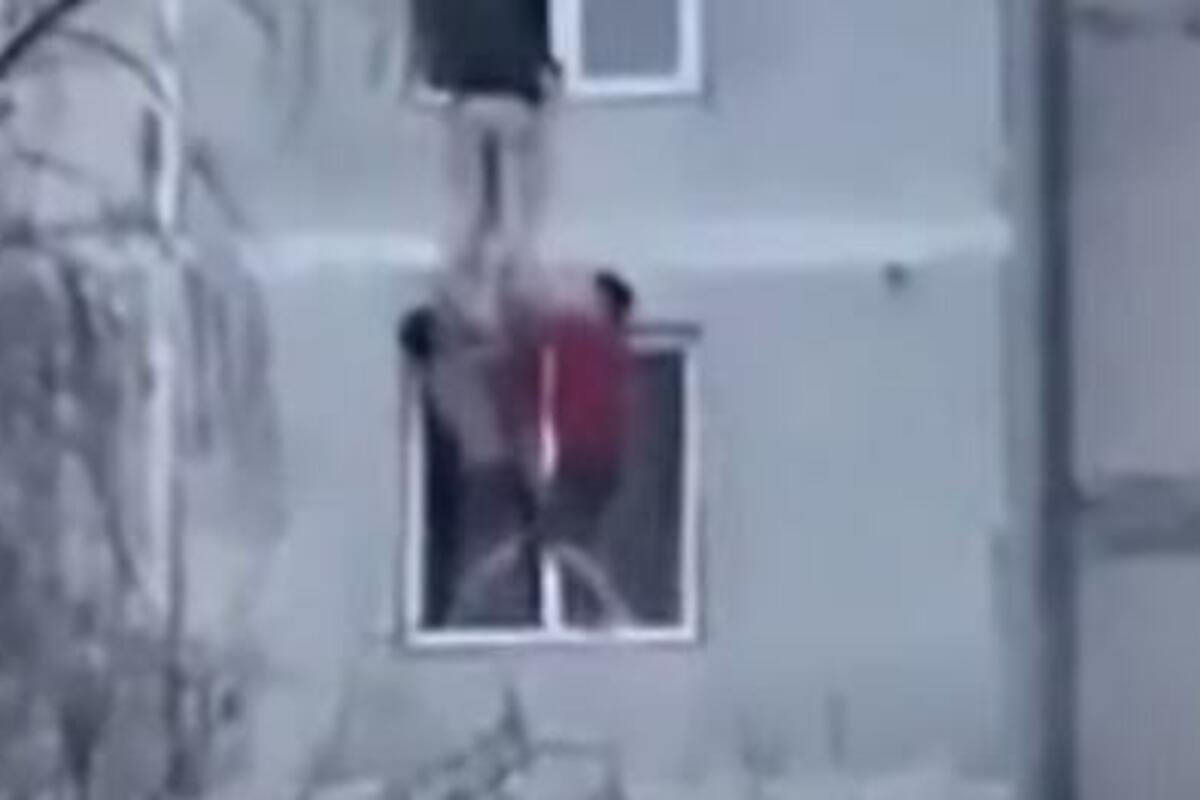 Navodno, snimak je nastao u subotu u Moskvi, a na njemu se vidi kako dva momka spašavaju devojku iz zapaljenog stana, rizikujući svoj život, s obzirom da nisu imali vremena da koriste zaštitnu užad.