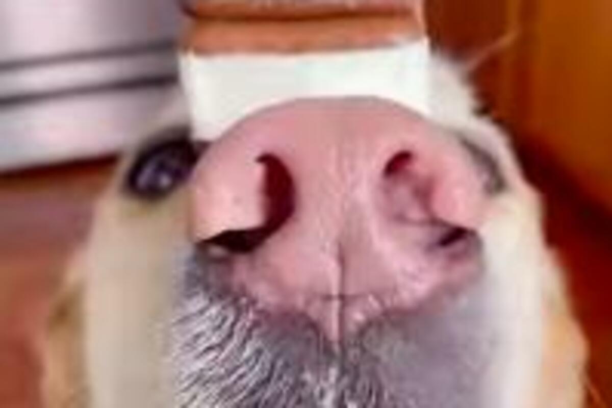Jedna preslatka kuca je uspela sasvim mirno da drži nekoliko "spratova" kolačića na svojoj njušci, bez pomeranja niti pokušaja jela.