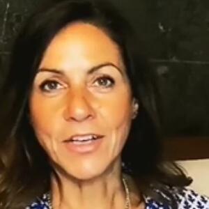 Vidimo je kako je naslonjena na ručke mašine, noge su joj podignute i ne dodiruju traku.