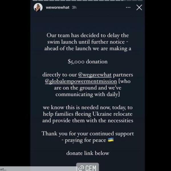 Takođe se kaže da „zbog trenutne situacije“ odlaže lansiranje bikinija i daje dodatnih 5.000 dolara (3.741 funti) u dobrotvorne svrhe Global Empoverment Mission.