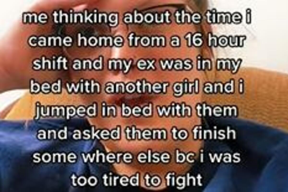 – Razmišljam o vremenu kada sam došla kući iz smene od 16 sati, a moj bivši je bio u krevetu s drugom devojkom, a ja sam skočila u krevet s njima i zamolila ih da to završe negde drugde jer sam bila preumorna da bih se svađala – napisala je uz isečak, koji je od tada pogledan preko milion puta. Stotine ljudi molilo je da čuje reakcije njenog bivšeg i druge žena, piše Mirror.