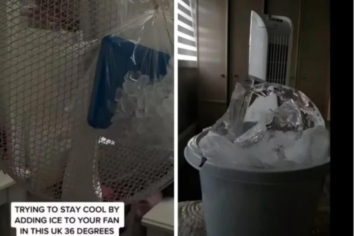 TikTok video snimci, koji su iz bezbednosnih razloga u međuvremenu uklonjeni, prikazuju ljude kako vezuju kese sa ledom za svoje električne ventilatore, kako bi uređaj prskao hladnu vodu.