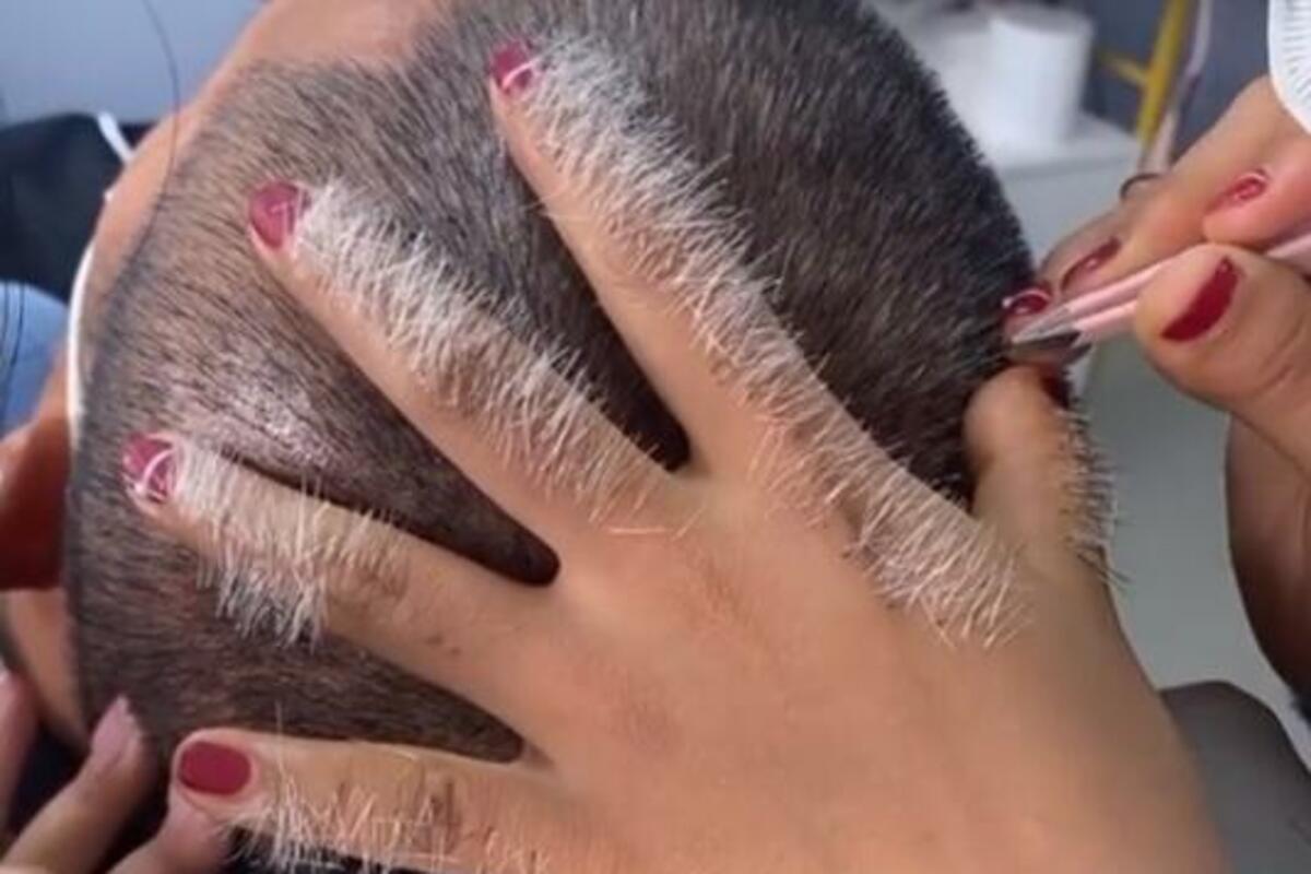 Ne, njega frizerka ne farba, niti bilo šta slično, ona mu pincetom čupa jednu po jednu sedu dlaku iz glave. Iako zvuči neverovatno, na snimku se vidi kako strpljiva frizerka sklanja "višak" sa glave jednog gospodina ređajući dlačice na svojoj ruci, precizno i polako. Taj potez ostavio je u čudu, ali i šoku, mnoge korisnike mreže, te su se zapitali zašto kosu jednostavno nije ofarbao?