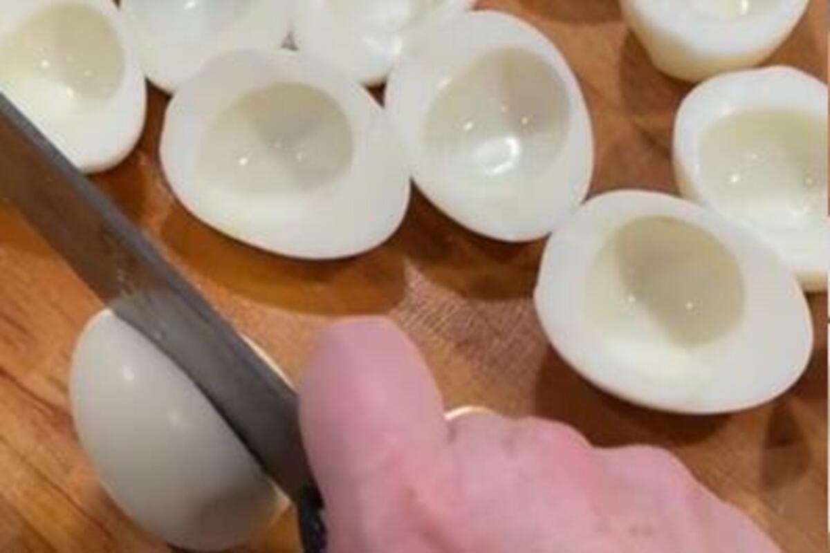 Naime, korisnica ove društvene mreže Andrea Van Derwerker podelila je sa svojim pratiocima način sečenja kuvanih jaja. U videu se na površini vidi više prepolovljenih jaja koja izgledaju savršeno isečena. Zatim ona uz pomoć noža lagano zareže jaje pa ga kotrlja prema sebi tako da žumance iskoči celo, a belance se podeli na savršene polovine. Takva žumanca možete npr izgnječiti ili samleti u secku pa puniti belanca i servirati na oval.