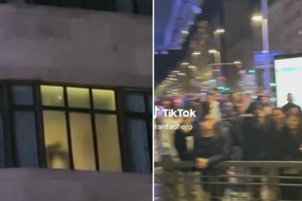 Ljudi su blokirali jednu od najpoznatijih ulica španske prestonice (Gran Via), veselo navijajući dok su senke iz hotelske sobe otkrivale šta se dešava.