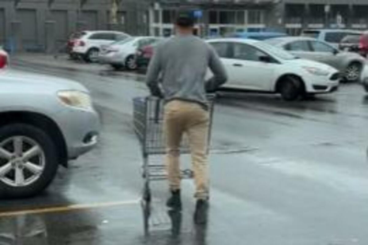 Snimak je zabeležen na parkingu poznatog lanca prodavnica prehrambenih proizvoda u Americi i Kanadi. Muškarac je dobro osmislio plan kako da kući odnese kese i kese namirnica.