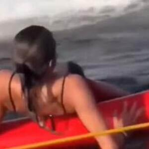 Ova devojka je pronašla ogromnu krabu u vodi, i umalo nije zgazila na nju. Sva sreća nije jer je ona bila vrlo vrlo trudna, što se vidi po njenom crvenom trbuhu.