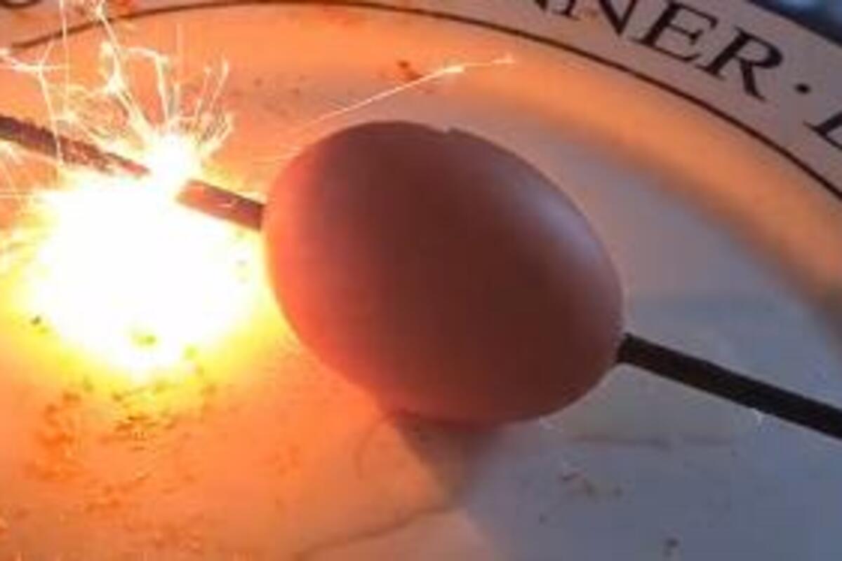 Na snimku se vidi jaje u tanjiru kroz koga je pažljivo provučena prskalica. Ljuska je ostala potpuno u komadu osim dve rupe kroz koju prolazi prskarica. Tiktoker je potom zapalio jedan kraj prskalice i snimao šta se dešava sa jajetom.