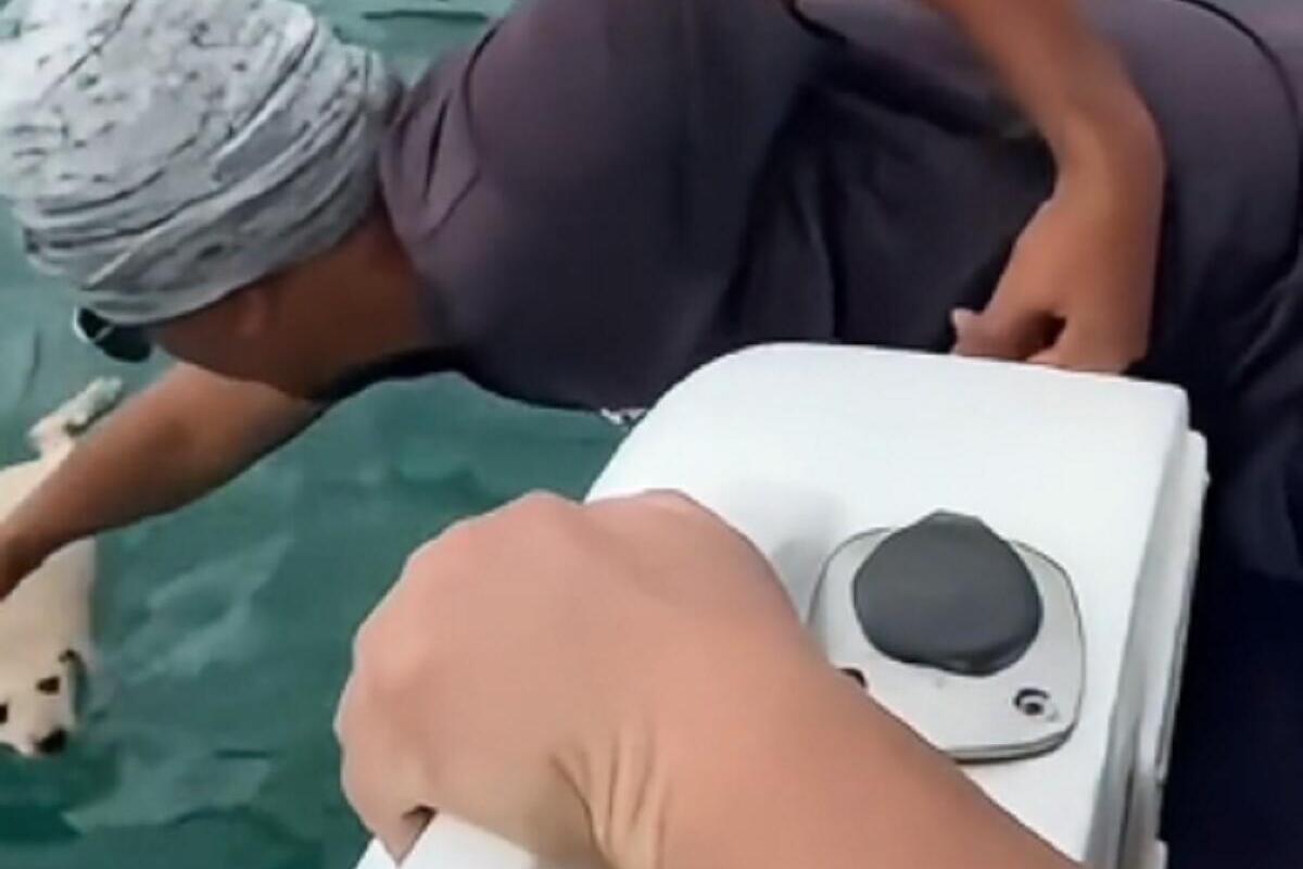 U narednom trenutku vidi se samo glava malenog šteneta koje je jedva uspevalo da se održi na površini vode. Kad je ugledao jahtu poslednjim atomima snage je zaplivao ka njima. Otac mališana je uspeo da ga dohvati, izvuče iz vode i spusti na palubu. Maleni, beli pas tačnije štene staro svega dva, tri meseca borilo se da dođe do vazduha. Toliko je bilo umorno da nije moglo da se pomeri, ni da stoji na nogama pas je drhtao od hladnoće i sa zahvalnošću je gledalo u svoje spasioce. Nikome nije bilo jasno kako je opšte dospelo u more i zašto je bilo tako daleko od obale.