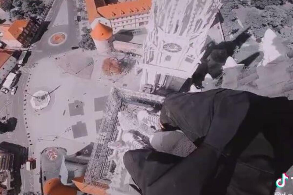 Na TikToku se pojavio video snimak mladića koji stoji na vrhu tornja zagrebačke katedrale i snima se.